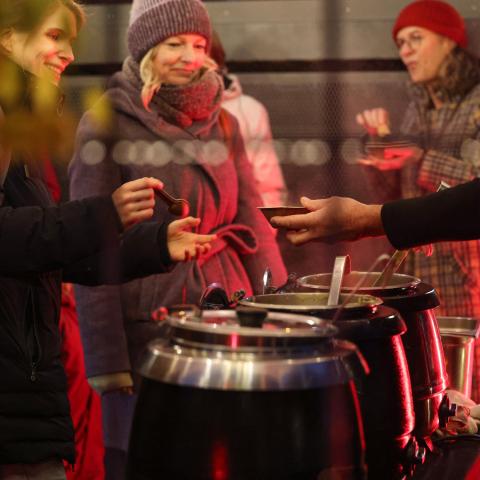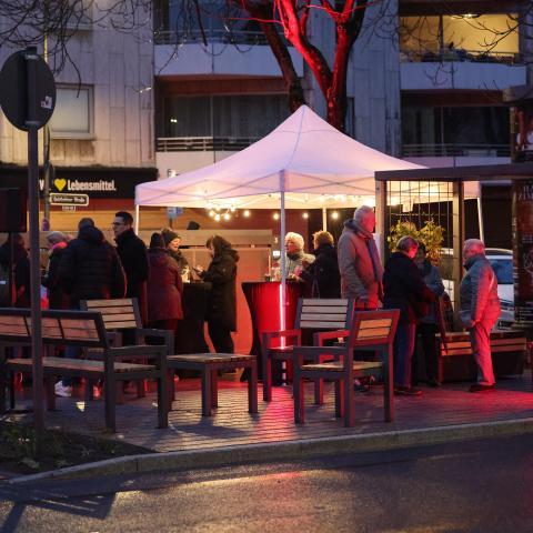 In einer gemütlichen und feierlichen Atmosphäre konnten sich die Gäste über das neue Mobilitätsangebot informieren und Feedback geben. Verschiedene Lichtinstallationen tauchten die Römerstraße in eine warme Stimmung. Besonders die 15 neu gepflanzten Bäume kamen dadurch besonders zur Geltung. Die leckere Kartoffelsuppe und die warmen Getränke kamen sehr gut an und sorgten dafür, dass niemandem kalt war. Besonders die kleinen Gäste hatten am Glücksrad, beim Ballonkünstler und beim Kinderschminken viel Spaß und freuten sich über die CMD-Malbücher, Buntstifte, bunte Ballonfiguren und mehr.
